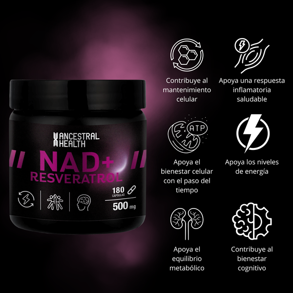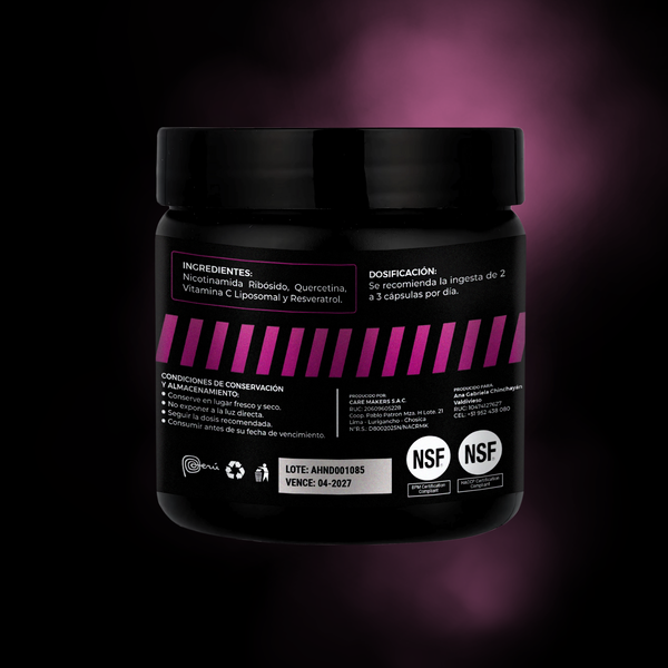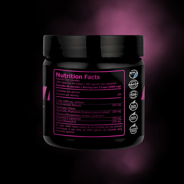 🔹 Repara y protege tus células con el poder del NAD+, activando las Sirtuinas para combatir el envejecimiento celular.🔹 Resveratrol: Potente antioxidante que protege el cerebro, reduce la inflamación y mejora la sensibilidad a la insulina.🔹 Quercetin & Vitamina C Liposomal: Ayudan a equilibrar los niveles de ácido úrico, promoviendo una mejor salud articular y metabólica.