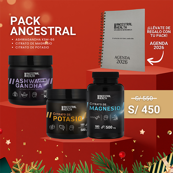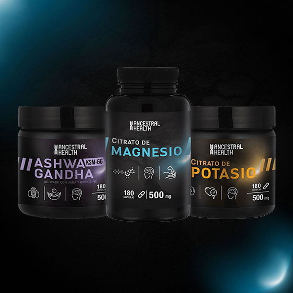 El Pack Ancestral Ashwagandha une ashwagandha, citrato de magnesio y potasio para recuperar calma y energía estable.