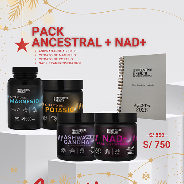 El Pack Ancestral + NAD reúne ashwagandha y NAD+ con minerales para potenciar la energía y el ánimo.