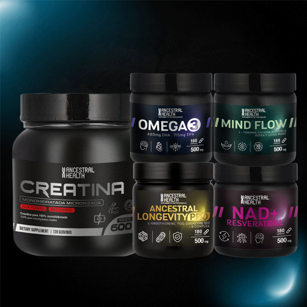 🧬 Longevity Pro ofrece antioxidantes y nutrientes clave que apoyan la salud cerebral y el envejecimiento cognitivo.⚡ Creatina, además de su efecto físico, mejora la energía mental y apoya la concentración.🐟 Omega 3 mantiene la estructura de las neuronas y reduce la inflamación cerebral.🌿 Mind Flow mezcla extractos naturales que estimulan el enfoque, la claridad y el ánimo.🔋 NAD+ impulsa la producción de energía celular y favorece la regeneración neuronal.