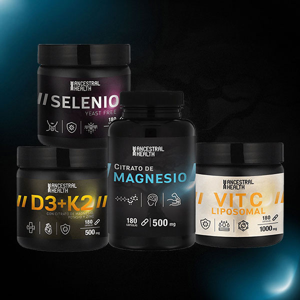 El Pack Inmune combina magnesio, D3+K2, selenio y vitamina C para fortalecer tu sistema inmunológico.